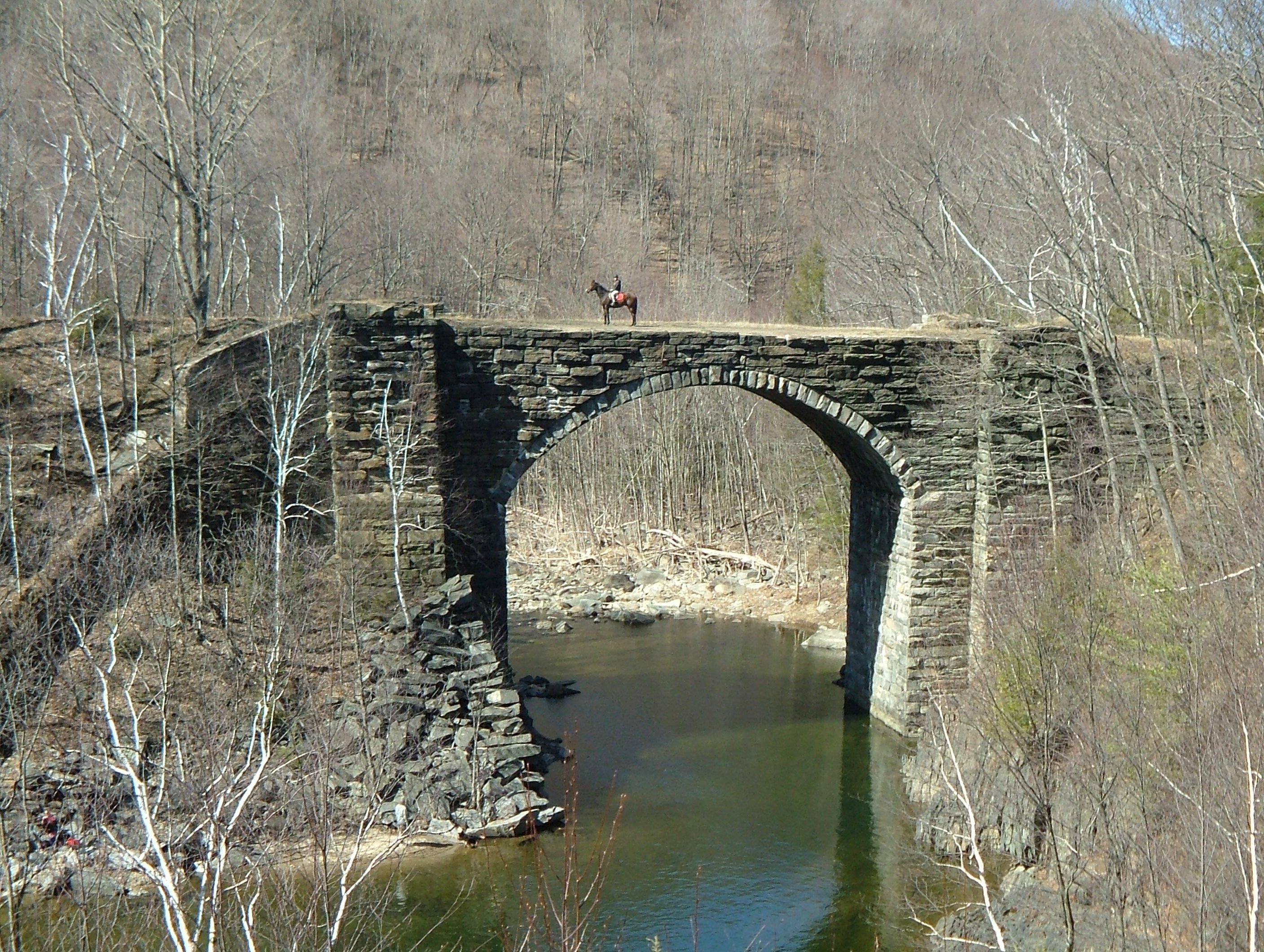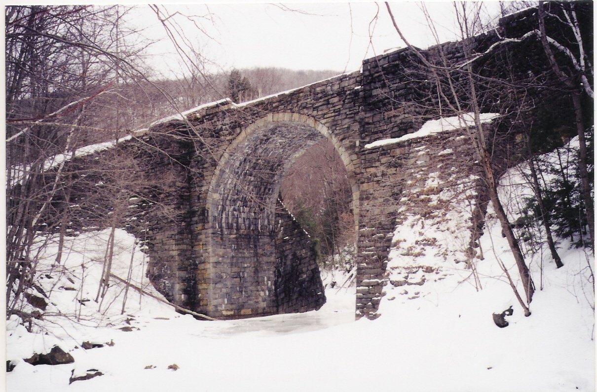 Contrasting with the area’s Irish majority, the Scottish-born owners of the subcontractors “Birnie Bros Construction” built 27 bridges, culverts and walls in the mountain section – including the first cluster of stone arch railroad bridges in America – right outside of Chester. Known as the Keystone Arches, they represent one of the most inspiring archeological sites anywhere. Enough stone was cut and transported to build a wall 6 ft. high and 40 miles long!